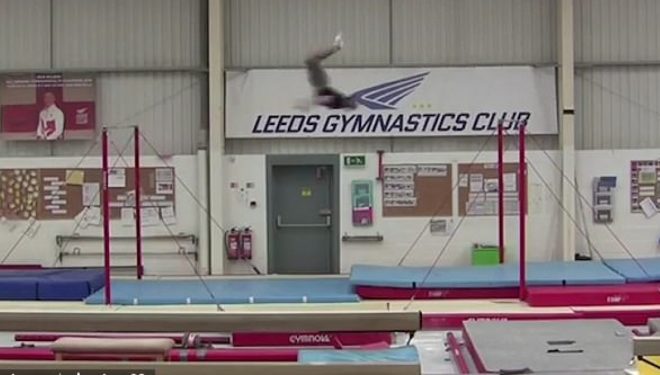 Ashley Watson nga Leeds i Anglisë, ka shënuar rekord për kërcimin më të gjatë së prapthi, prej njërës shufër paralele në tjetrën.