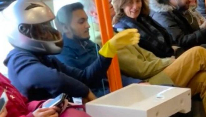“Lani vazhdimisht duart”, kjo është një nga thirrjet që po dëgjohet gjerësisht këto ditë dhe për t’iu përmbajtur në mënyrë fanatike këtij apeli, një pasagjer në Londër është parë me një lavaman me vete, për të larë duart, teksa ishte duke udhëtuar me anë të transportit hekurudhor.