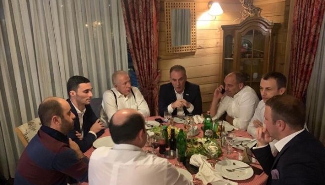 Në fotografi shihet se lideri i NISMA’s, Fatmir Limaj dhe ai i AKR’së, Behgjet Pacolli janë takuar të shoqëruar nga njerëz të afërt të tyre.