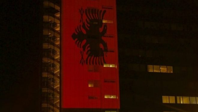 Për nder të 28 Nëntorit – Ditës së Flamurit, ndërtesa e Qeverisë së Kosovës ndriçohet Kuq e Zi.