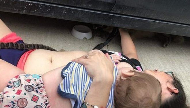 Derisa nëna 30-vjeçare ishte duke e nxjerrë qenin e ngecur nën veturë, Keanu që ka vetëm dhjetë muaj, nisi të qante dhe kërkonte të pinte gji, transmeton Telegrafi.