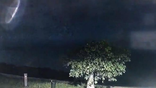 Kamera ka filmuar vetëtimën në qiell, por në një moment në pjesën e majtë të ekranit shfaqet një objekt misterioz fluturues.