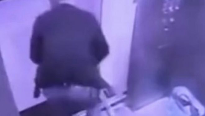 Në të shihet se si një mjeshtër e vë në mes të dyerve të ashensorit një vegël pune me qëllim që të parandalojë mbylljen e tyre, dhe më pas shihet duke dalë jashtë, transmeton Telegrafi.