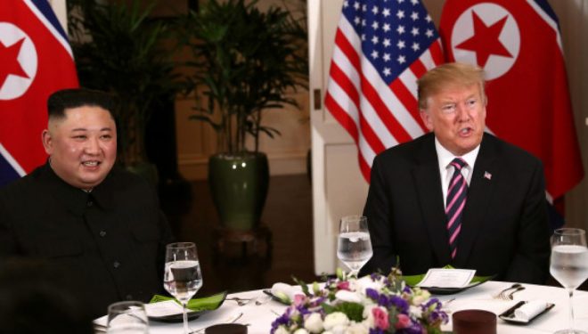 Kim Jong-un u takua në Vietnam me presidentin amerikan, Donald Trump. Ata u ulën për të ngrënë në orën 7:00 të orës lokale pas një takimi 20-minutësh në hotelin Metropole në Hanoi.