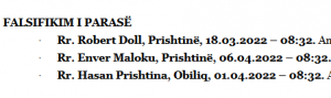 Nga ajo që shihet në raport, del se rastet kanë ndodhur në ditë e lokacione të ndryshme, por se koha është e njëjtë: 08:32 e mëngjesit, derisa bëhet fjalë për kartmonedha prej 100 euro në dy raste, dhe 50 euro në të tretin.
