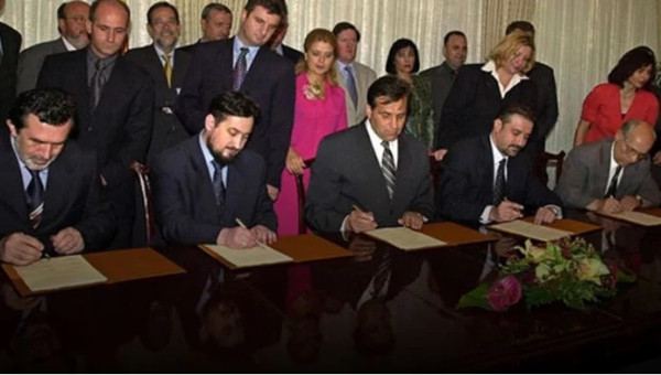 Më 5 korrik 2001, Qeveria e Maqedonisë së Veriut dhe kryengritësit shqiptarë arrijnë marrëveshjen për paqe.