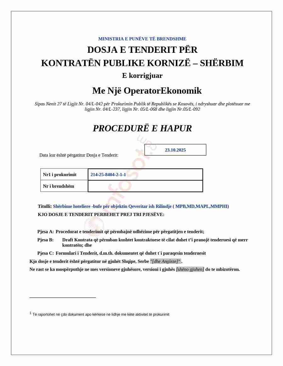 Sipas dokumenteve të prokurimit publik, tenderi ka kaluar disa herë për “përmirësim të informatave”, përfshirë edhe zëvendësimin e personit kontaktues. Afati i fundit për dorëzimin e ofertave është 3 nëntor 2025, ndërsa kontrata do të zgjasë deri në fund të vitit 2028.