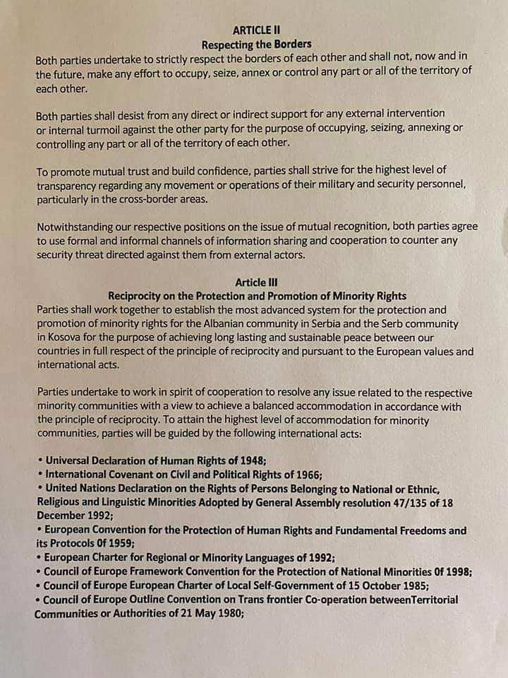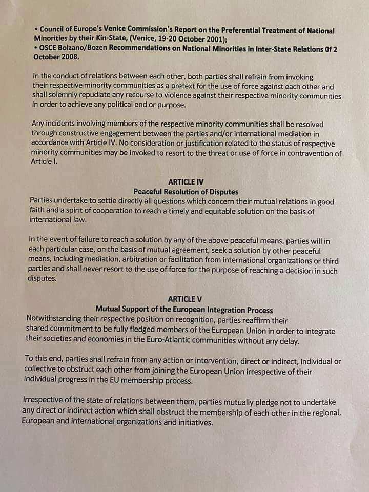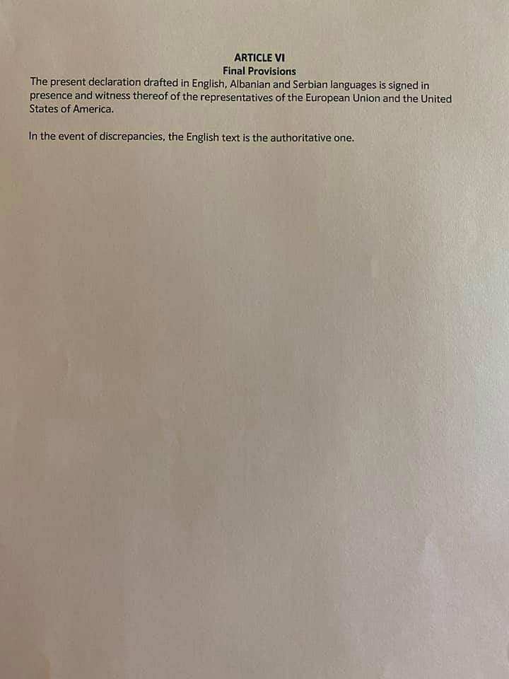 Po ashtu, siç potencohet në dokument, delegacioni me Kurtin në krye kërkoi njohjen reciproke mes dy vendeve si rezultat i marrëveshjes finale.
