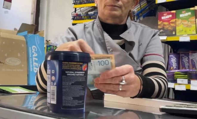 Në një nga dyqanet në Leposaviq, bashkëbisedimi mes qytetarit dhe shitëses tregon se pagesa me dinar vazhdon të kryhet lehtë dhe pa telashe.