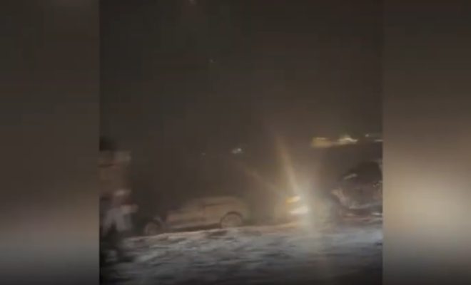 Në pamjet e siguruara nga Klan Kosova shihen disa vetura që kanë dalë nga rruga, si pasojë e kushteve të vështira për shkak të reshjeve të dendura të shiut.