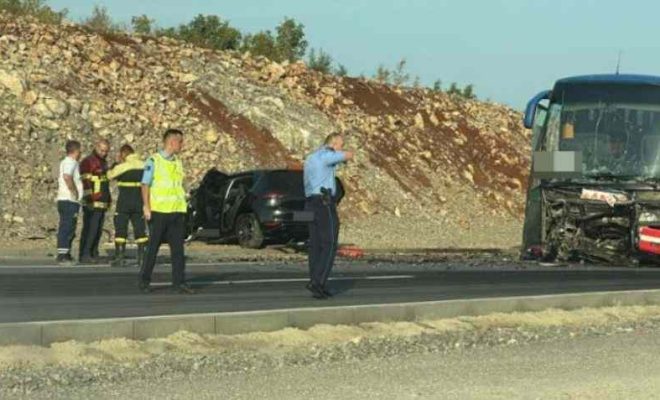Si pasojë e aksidentit mes një autobusi dhe një veture, ka mbetur i vdekur nje person dhe 5 të tjerë janë lënduar.