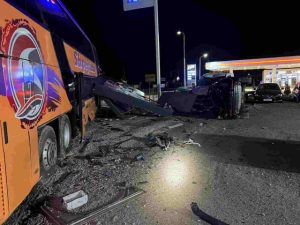 Autobusi i kompanisë “Shpejtimi” është aksidentuar me disa vetura me autosallonin ‘Xeni’ në magjistralen Gjakovë-Prizren, në orët e para të së hënës.