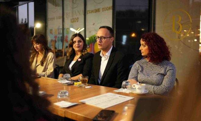 Kandidati për kryetar të Komunës së Gjilanit nga Lëvizja Vetëvendosje, Alban Hyseni, mori pjesë në një takim me vajza dhe gra të qytetit, të organizuar nga kandidatja për Asamble, Mimoza Kadriu Qerimi.
