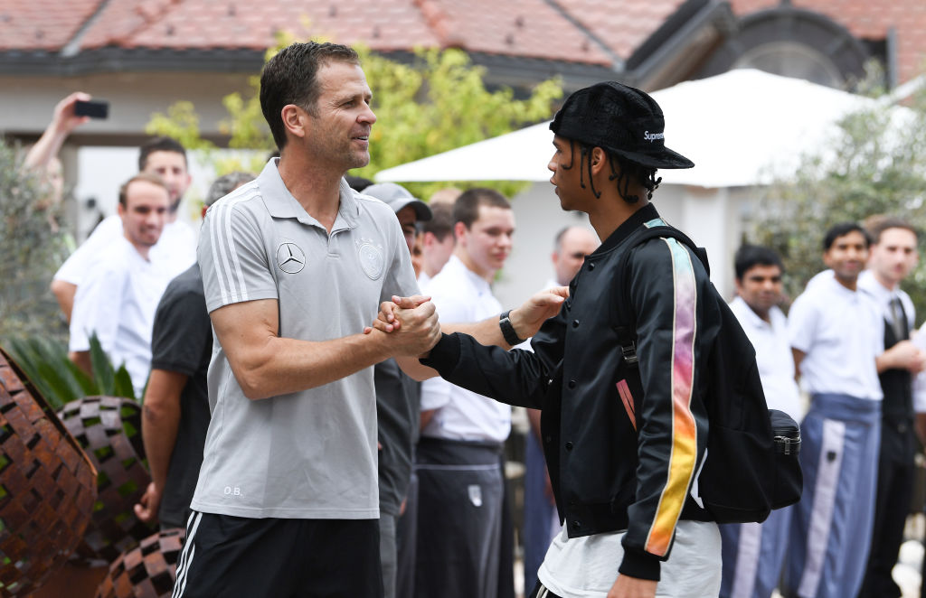 Menaxheri i ekipit gjerman, Olivier Bierhoff me Leroy Sanen, Foto: Getty Images