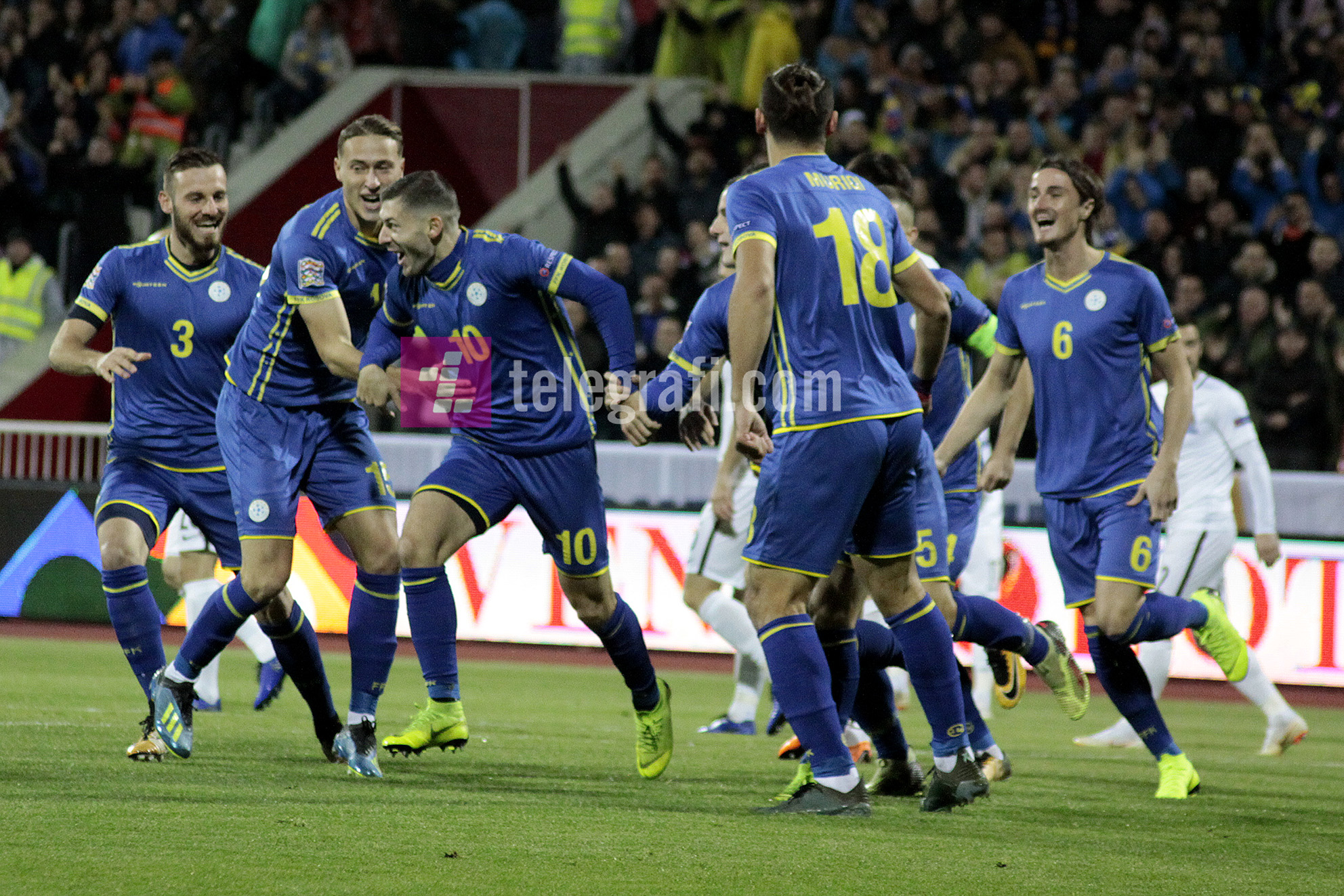 Arbër Zeneli feston pas golit të shënuar kundër Azerbajxhanit (Foto Ridvan Slivova/Telegrafi)
