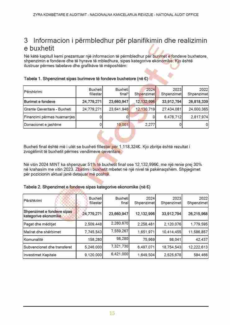 Edhe komiteti i auditimit në MINT nuk ishte funskional ka gjetur raporti. Sipas të gjeturave, ai u themelua vetëm në nëntor 2024 dhe nuk mbajti asnjë takim për atë vit, duke dështuar në mbikëqyrjen dhe mbështetjen e Njësisë së Auditimit të Brendshëm.