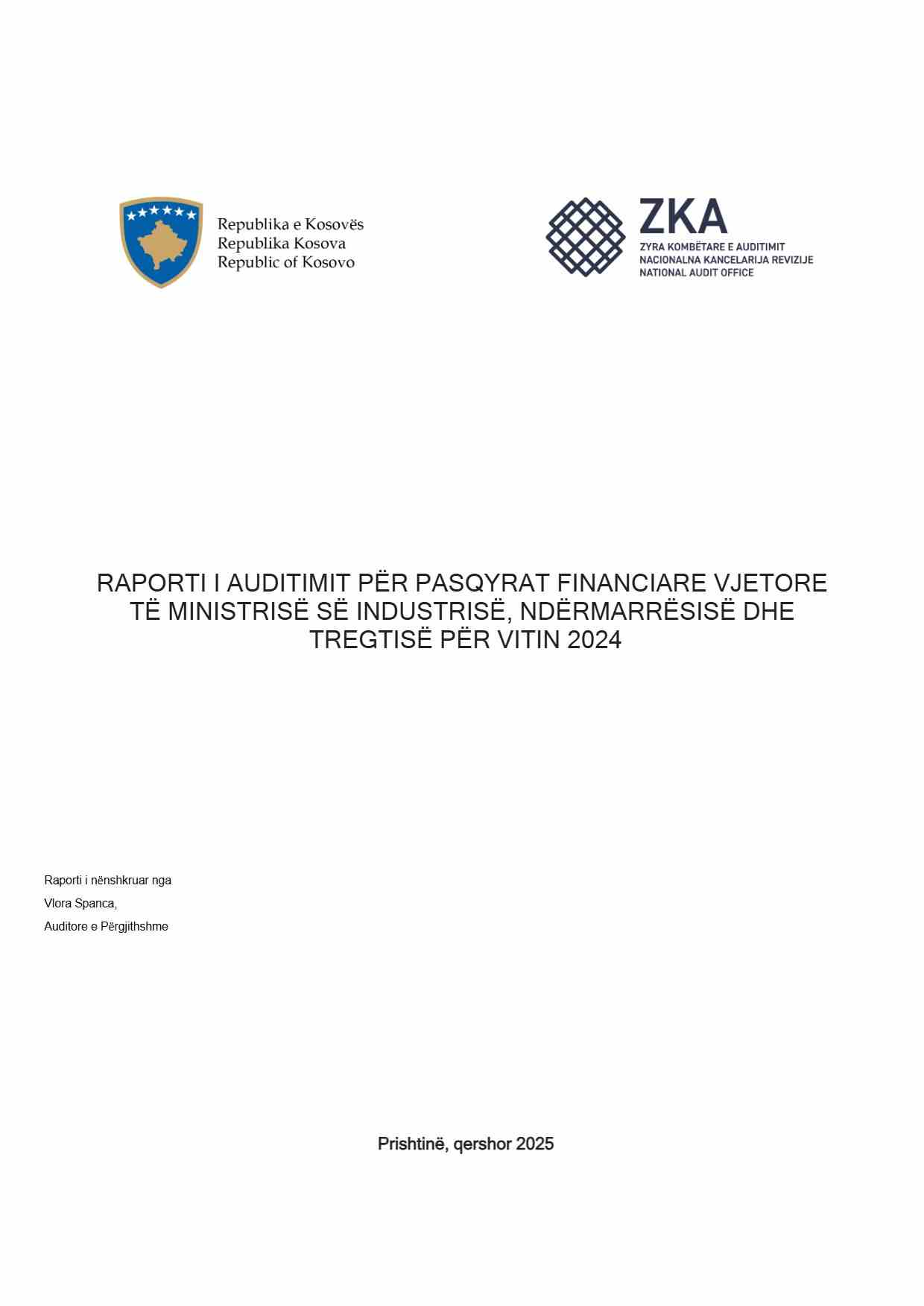 Raporti i plotë: RAPORTI I AUDITIMIT PËR PASQYRAT FINANCIARE VJETORE TË MINISTRISË SË INDUSTRISË NDËRMARRËSISË DHE TREGTISË PËR VITIN 2024 (2)