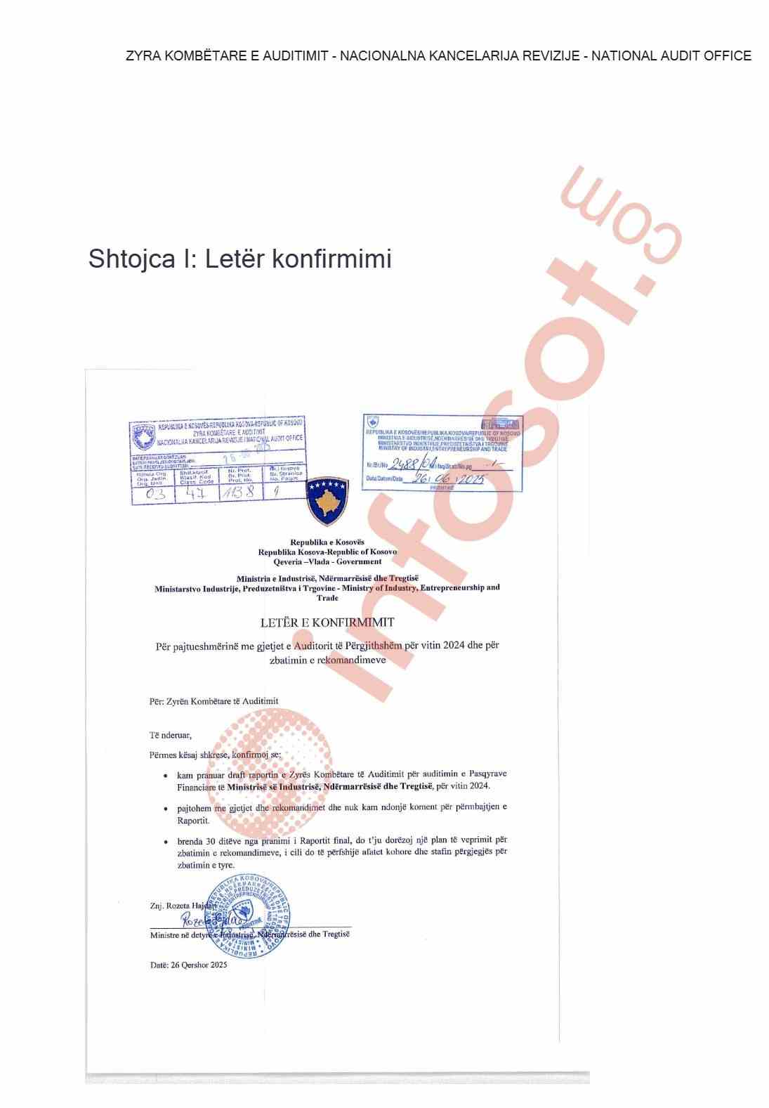 Zyra Kombëtare e Auditimit ka evidentuar parregullësi dhe shkelje serioze në vitin 2024 në Ministrinë e Industrisë, Ndërmarrësisë dhe Tregtisë kryesisht në menaxhimin e financave.