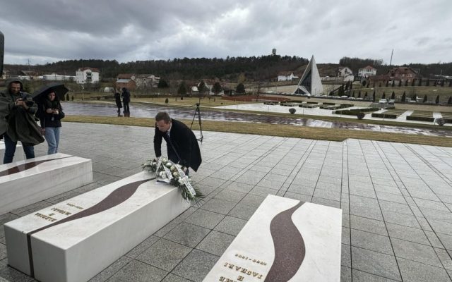 Çedomir Stojkoviq, avokat i politikanit serb, Nikolla Sandulloviq, ka vendosur të enjten lule te varri i Blerina Jasharit, vajzës shtatëvjeçare të vrarë në Prekaz.