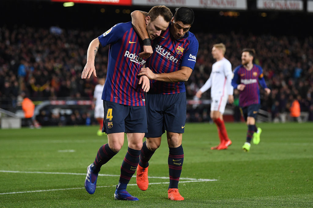 Pjesa e parë u mbyll 2-0 me golin e Rakitic.