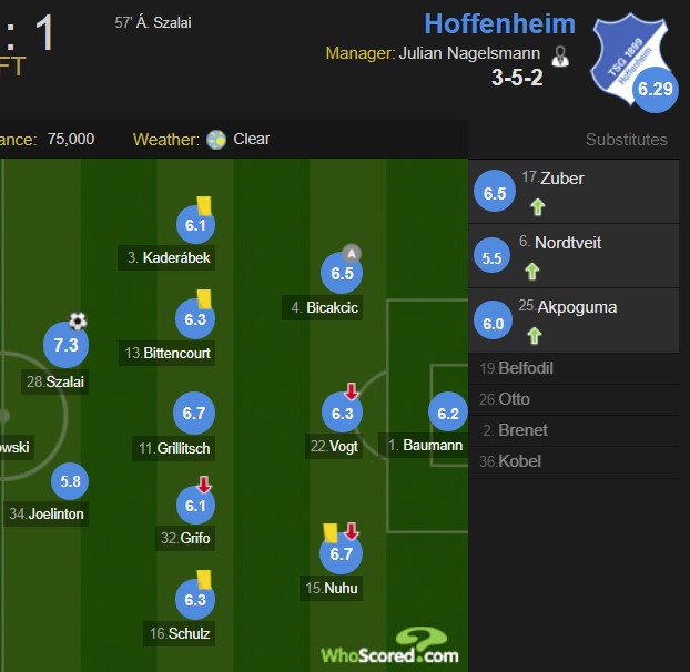 Në anën tjetër, nota më e ulët shkoi për Nordtveit të mysafirëve 5,5 e sulmuesi Joeliton 5,8 ndërsa paraqitje jo të mirë kishin edhe dyshja Grifo dhe Kaderabek 6,1.