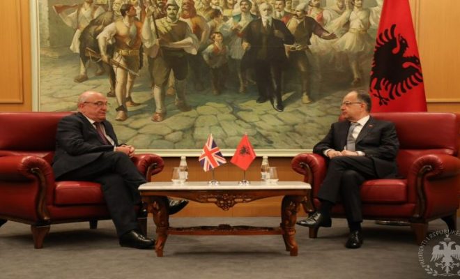 Presidenti i Shqipërisë, Bajram Begaj priti sot në një takim pune Stuart Peach, i Ngarkuar i Posacëm i Qeverisë britanike për Ballkanin Perëndimor që shoqërohej nga Ambasadori i Mbretërisë së Bashkuar në Tiranë, Alastair King-Smith.