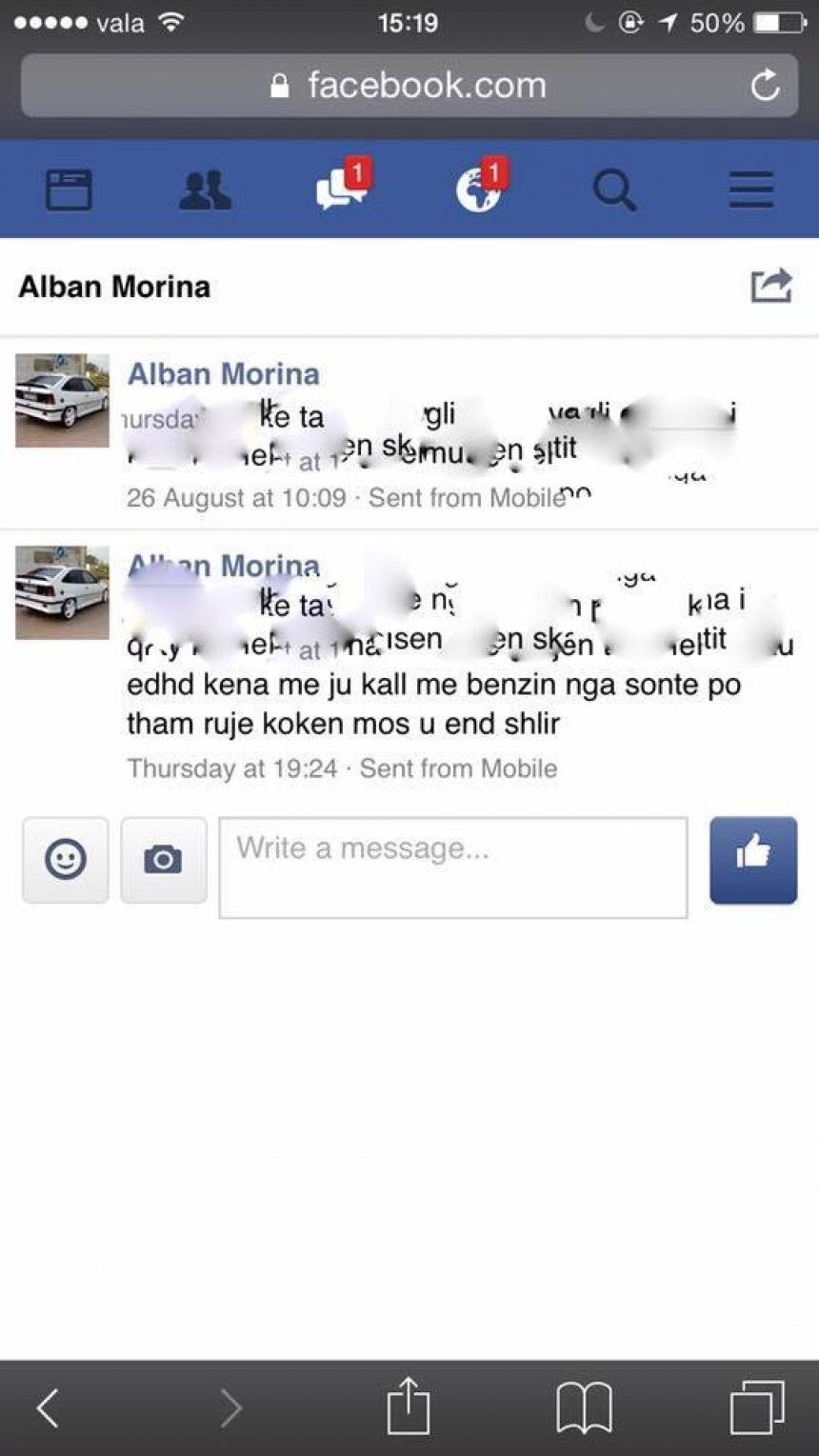 “Kena me ju kall me benzin, nga sot po te them ruje koken mos u end shlir” (sic)!