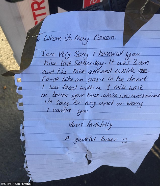 Hajni që e gjeti një biçikletë në Stroud të Anglisë, e ka kthyer sërish të nesërmen, bashkë me një shënim ku kërkonte falje.
