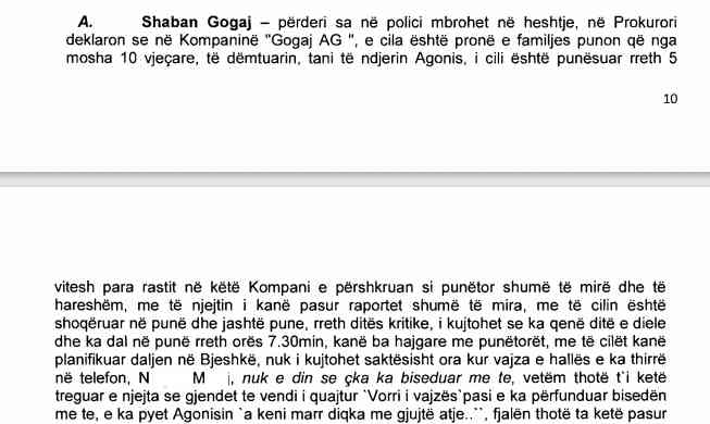 Në dëshminë e tij dhënë në polici, Shaban Gogaj kishte deklaruar se nuk i kujtohet çka kishte biseduar me vajzën e hallës së tij, N.M.