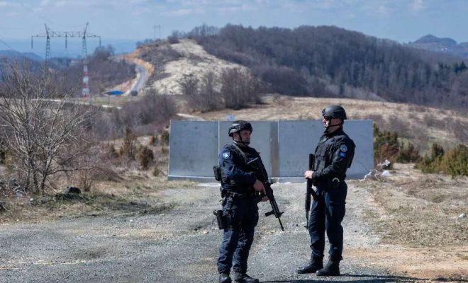 Policia e Kosovës në kufirin me Serbinë mbi fshatin Banjskë. Elshani tha: “Situata nuk është e mirë”. Foto: The Telegraph
