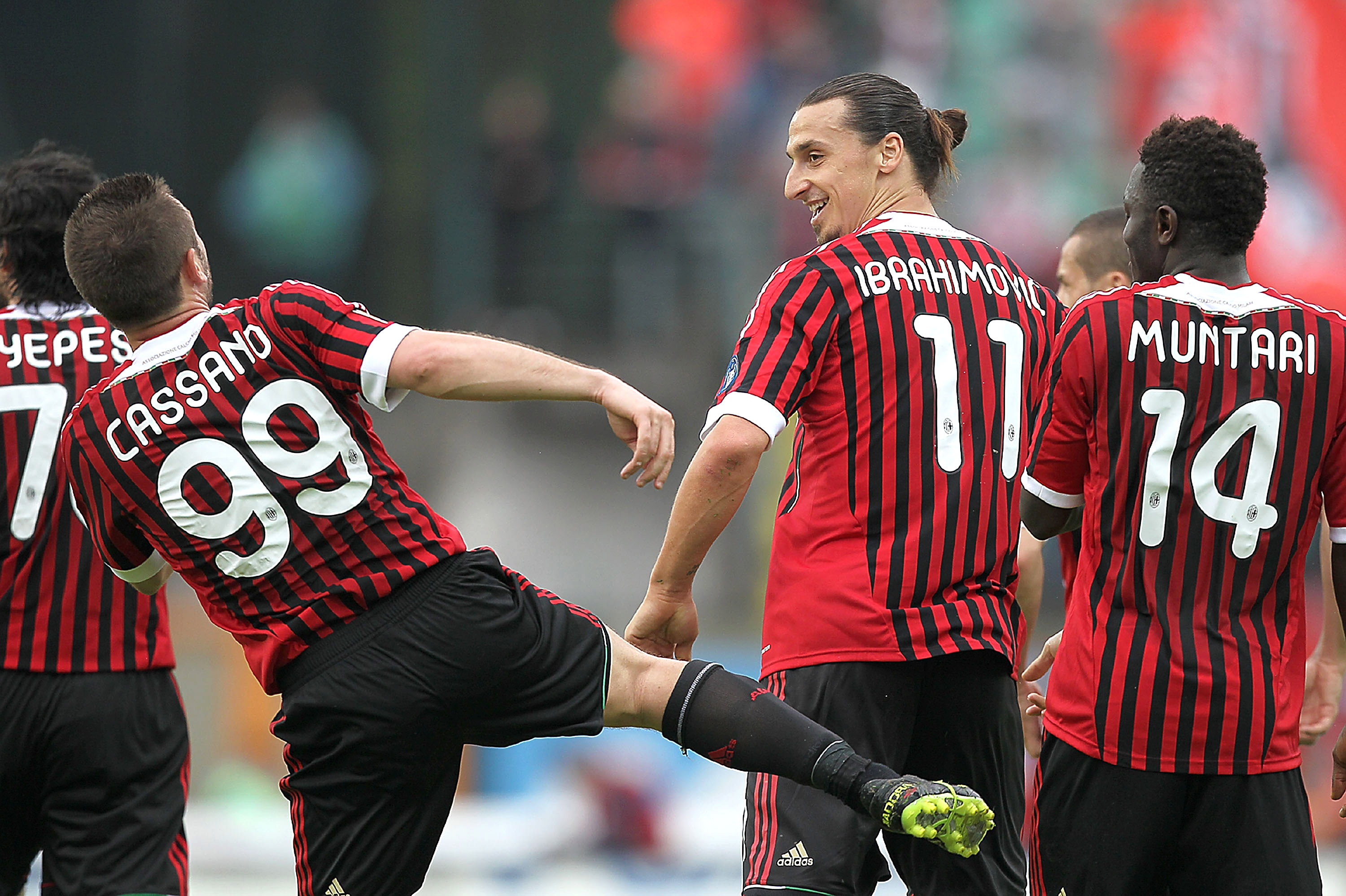 Antonio Cassano duke festuar një nga golat e Milanit kundër Sienas (Foto: Gabriele Maltinti/Getty Images/Guliver)