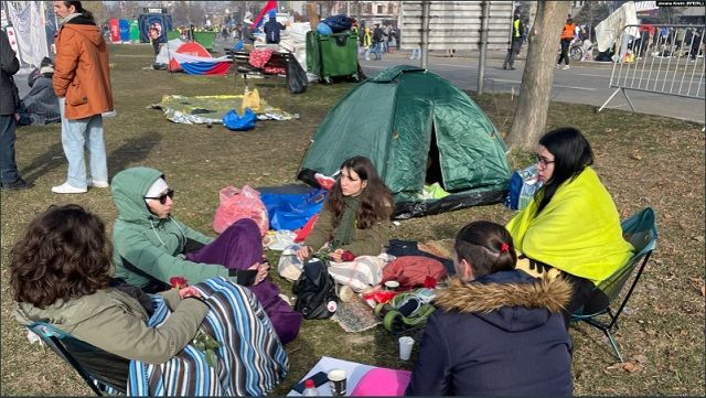 Studentët kalojnë natën afër urës së bllokuar në Novi Sad