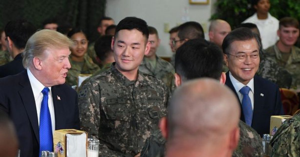 Videoja që po bën xhiron e botës: Ushtari i Koresë së Jugut nuk mund të fshihte gëzimin që ishte ulur pranë Trumpit – e shikonte tinëzisht me “bishta” të syve…