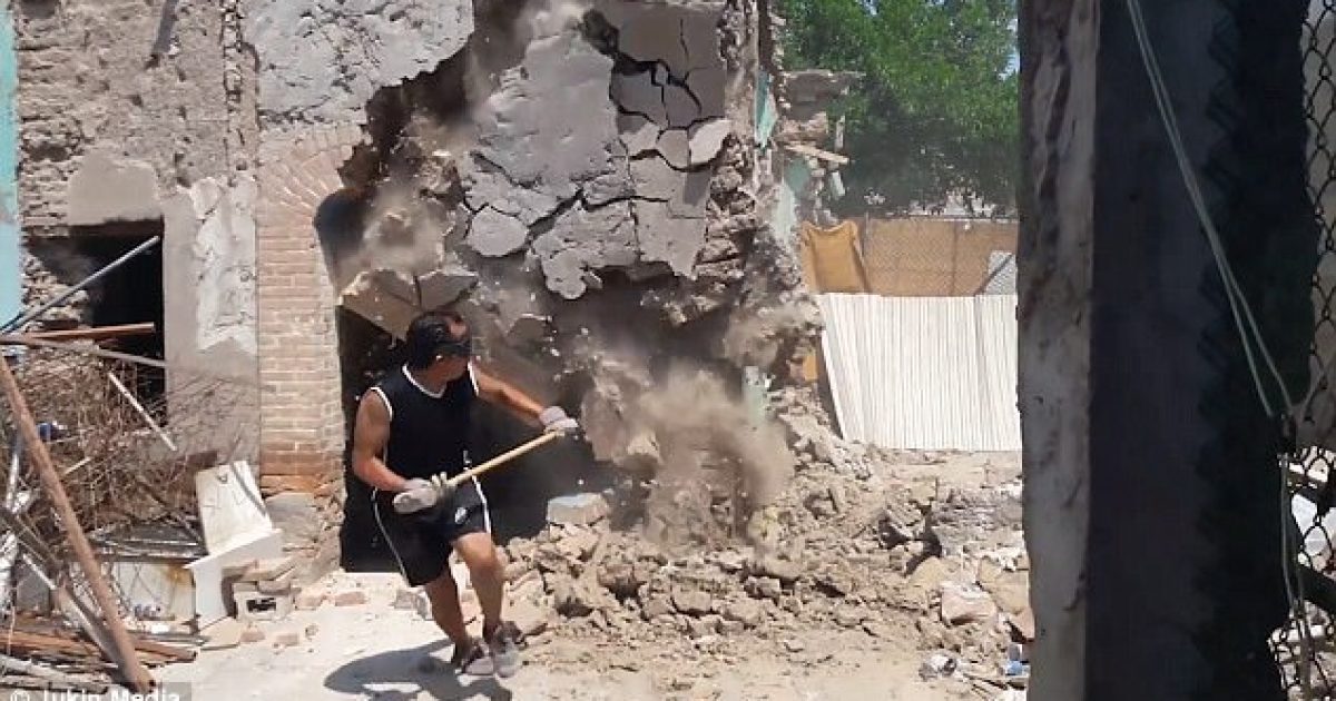I shpëton vdekjes për një fije floku: Tentoi ta demoloj objektin e vjetër me çekan, muri për pak sa nuk i ra përmbi (Video)