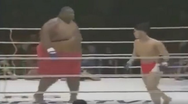 Çfarë ndodh në ring kur një 74 kilogramësh sfidon një 272 kilogramësh? (VIDEO)