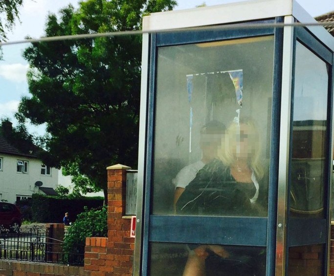 Çifti nuk përmbahet, bëjnë seks në kabinë telefoni (Foto + 18)
