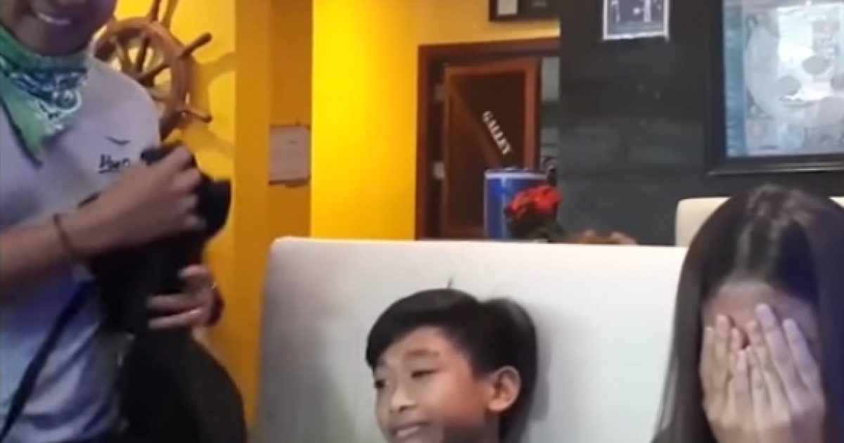 Qëndroi tri vite jashtë shtetit, befasoi fëmijët e tij duke shërbyer si kamerier i maskuar (Video)