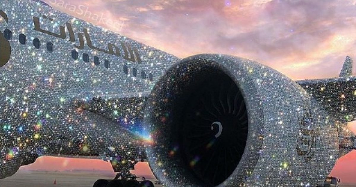 Aeroplani i kompanisë arabe i mbuluar prej diamanteve mahniti përdoruesit e internetit, por jo gjithçka është si duket (Foto)