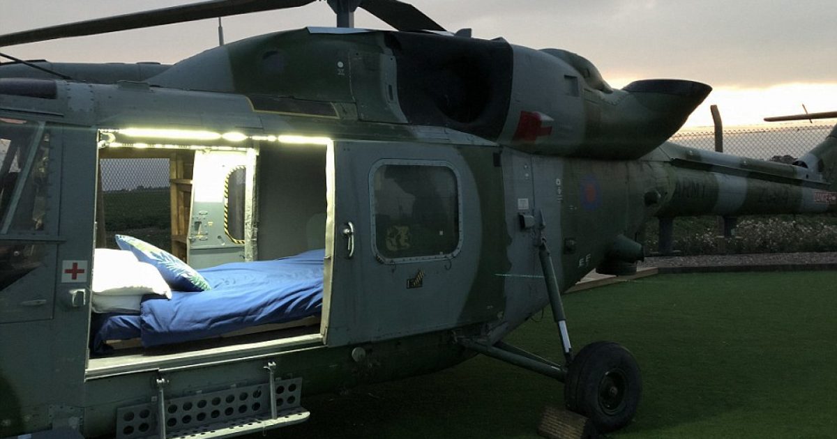 Helikopterin ushtarak që e bleu përmes internetit, e shndërroi në ‘motel’ të rehatshëm (Foto)