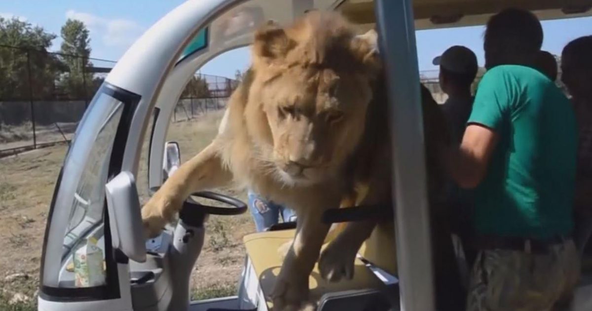 Çfarë sikleti! Luani “kacavirret” në veturën e mbushur me turistë, shihni reagimin e tyre (Video)