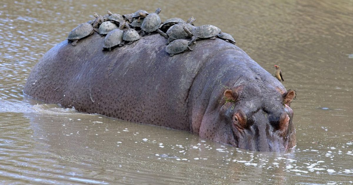 Breshkat e shfrytëzuan shpinën e hipopotamit, si një pushimore në mes të liqenit (Foto)