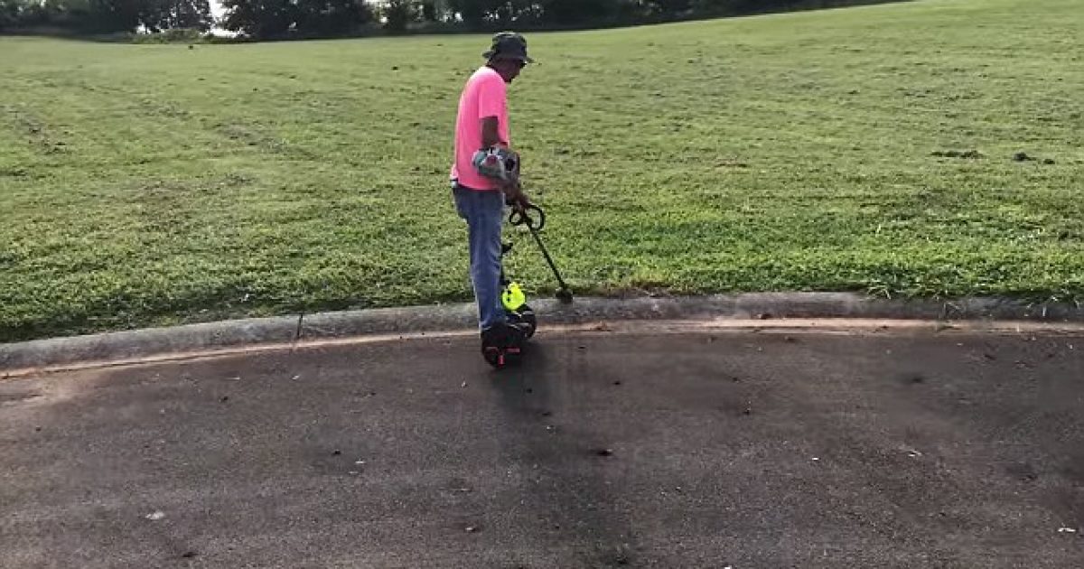 Kopshtari me metodën e zgjuar, pret me lehtësi barin e rritur në pjesët anësore (Video)