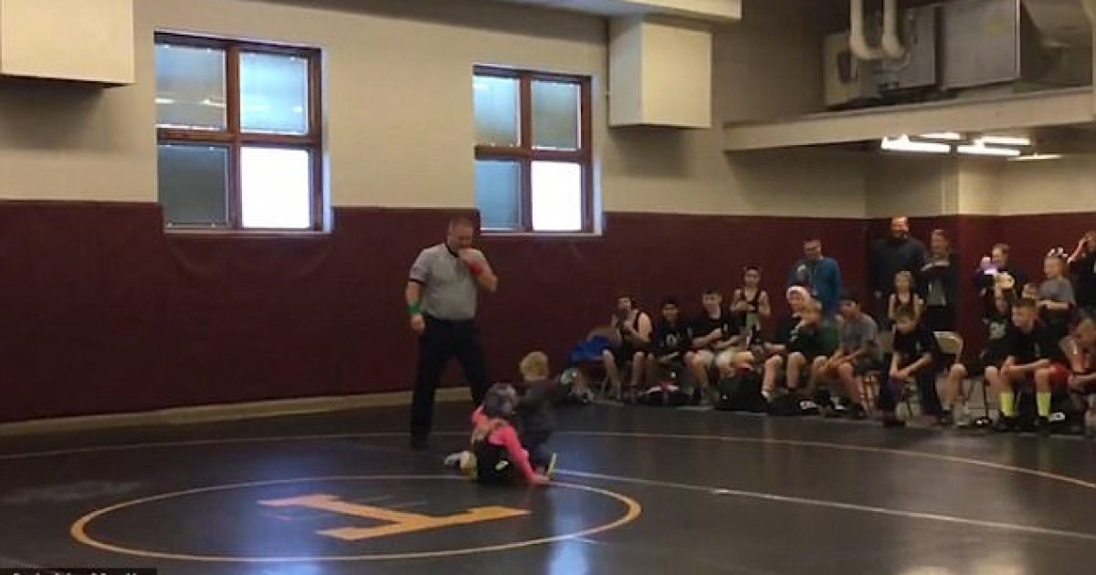 Fëmijët po garonin në mundje, vogëlushi futet në “ring” për ta “shpëtuar” motrën (Video)