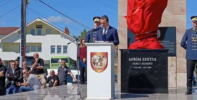 Përurohet shtatorja e heroit Afrim Zhitia në fshatin Llugë, Kurti: Skulpturë monumentale e heroit të Kosovës