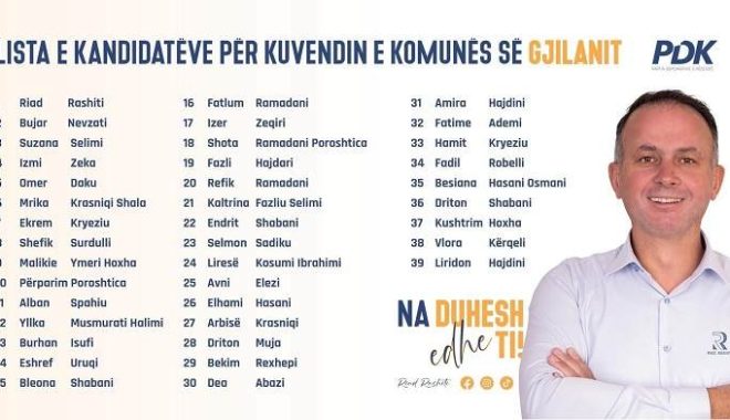 PDK publikon listën për asamblenë komunale në Gjilan: Me Riad Rashitin për kryetar, Gjilanit mund t’ia kthejmë energjinë dhe qeverisjen që e meriton