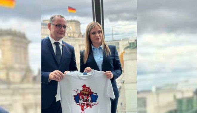 Provokon deputetja serbe, ia dhuron deputetit gjerman bluzën ku harta e Kosovës është e mbuluar me flamurin e Serbisë