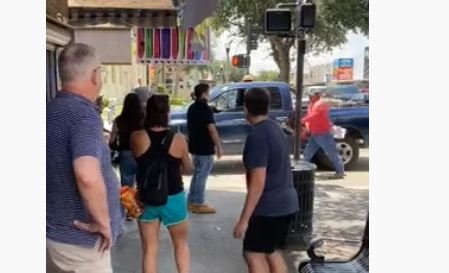 Pamje shokuese/ Manifestimet në SHBA, një burrë i kërcënon protestuesit me sharrë elektrike