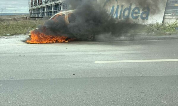 Pamje – Digjet një automjet në Çagllavicë, policia e zjarrfikësit në vendngjarje