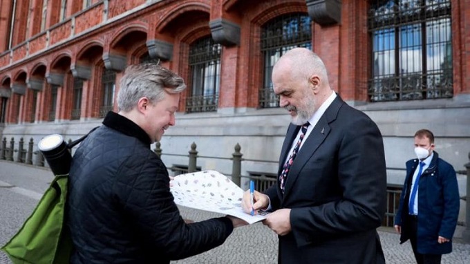 Rama befasohet teksa del nga Bashkia e Berlinit, gjermani i kërkon autograf