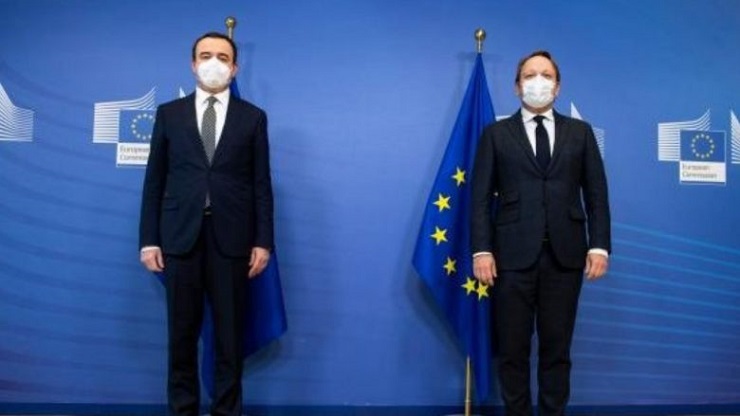 Kurti takohet me komisionarin e BE-së, flasin për reformat në drejtësi dhe zbatimin e planit ekonomik